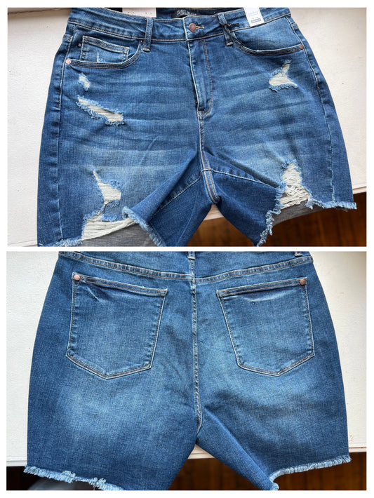 Judy Blue Plus | High Waist Distressed Dark Wash Shorts