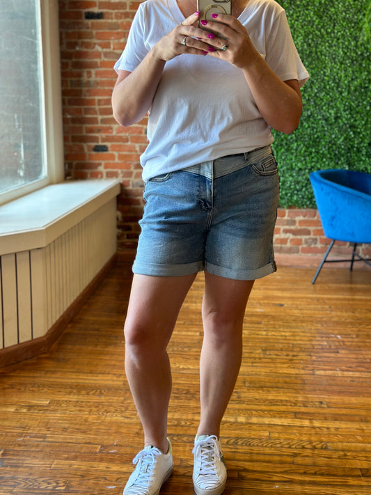 Judy Blue Plus | High Waist Roll Up Light Wash Shorts