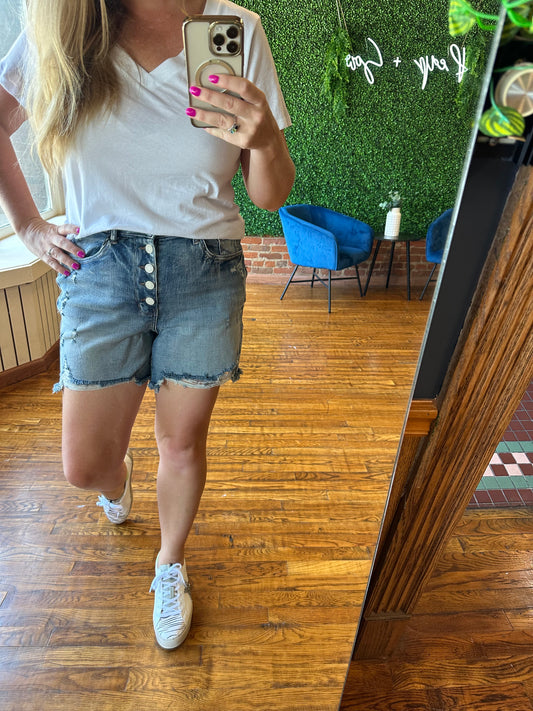Judy Blue Plus | High Waist Distressed Medium Wash Button-fly Shorts